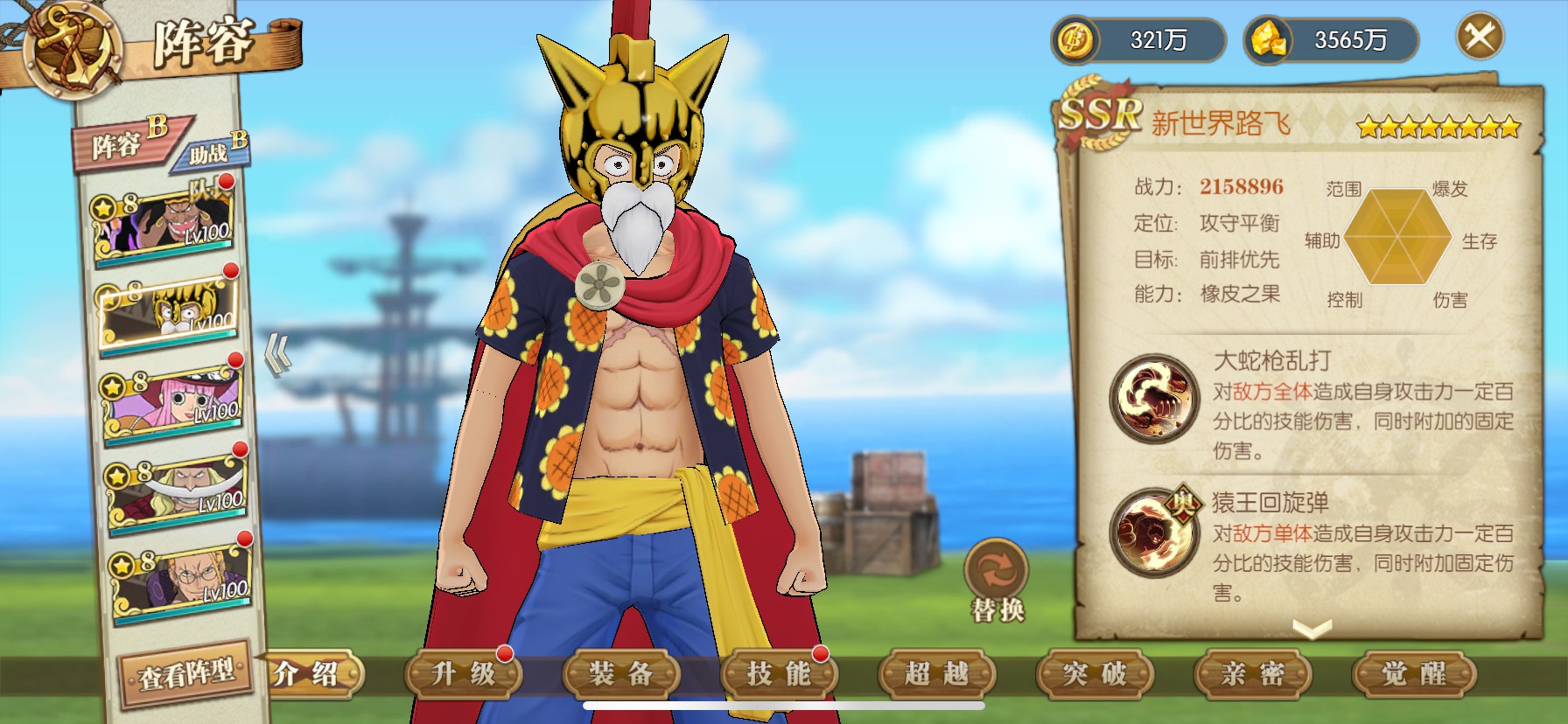 2.平民玩家抽到路飞后,在路飞觉醒试炼中打副本,获得路飞碎片升级到8星。