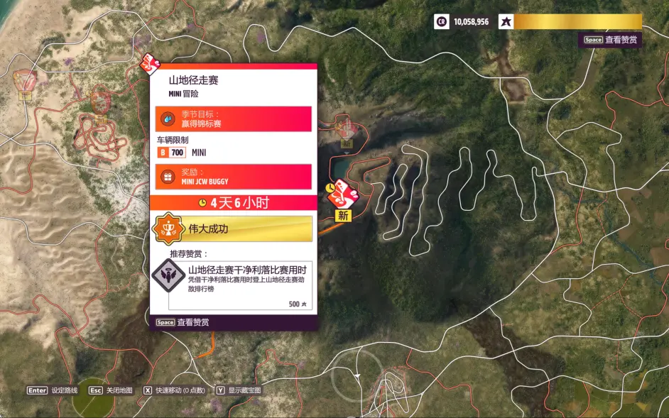 这车其实在下面其他三场季节赛里是奖励车,所以建议先跑完那场季节赛拿到奖励之后再跑这个,因为这台福特bronco在越野赛里更快,但是如果你已经有了或者完全不缺CR,但是就当我没说,直接用就行。