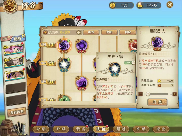 ③黑暗引力,5费横排三格,100%使黑胡子不被移除,持续到每次出手。一速黑胡子前排,不怕白胡子劈,大妈和藤虎移除,不怕新路飞延展奥义