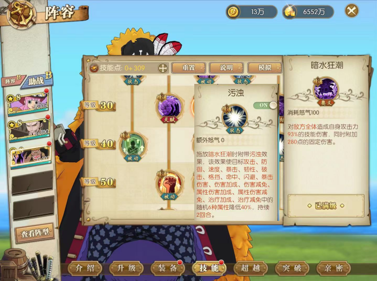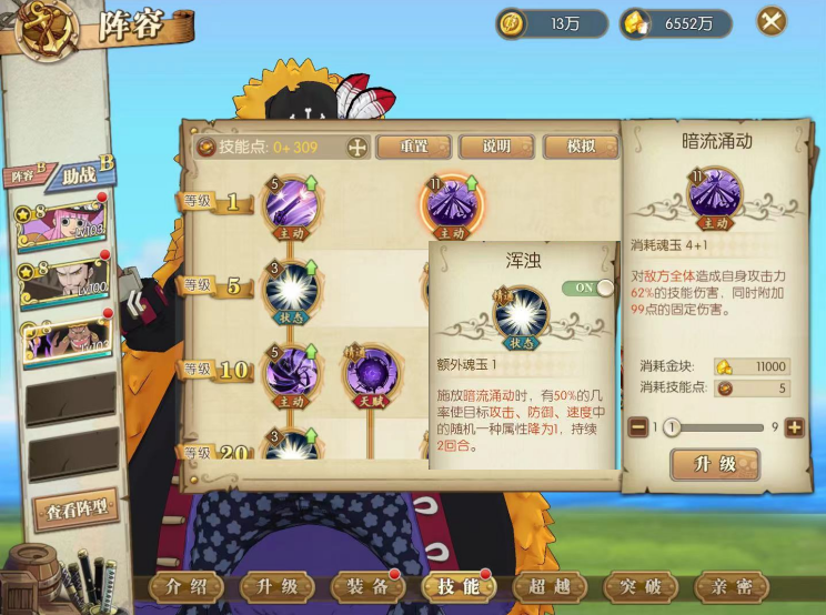 ②暗流涌动,5费全体,50%概率让敌人攻击、防御、速度其中之一降为1,持续2回合。这技能状态太变态了,还是全体50%,这技能状态大概率要削,这已经不是影响游戏平衡的问题了,而是限制玩家游戏体验了。