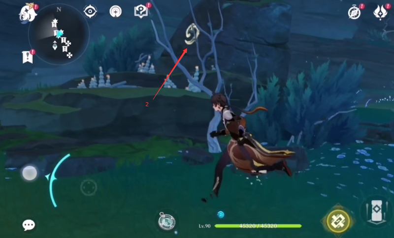 第四个在右侧的山腰偏僻位置,需要一步步的爬山,在这里要注意体力值的消耗,来到山腰位置之后向右走即可观察到。