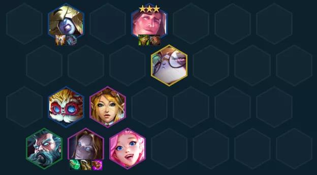 阵容思路:3白魔下的发条、宝石、风女、萨勒芬妮具有高额治疗效果,这几个棋子能够互相启动打combo,只要不被秒杀就可以奶起来,唯一的缺点是前排不够牢靠,宝石的肉装一定要齐全,后期杰斯来了可换时光提升坦度。