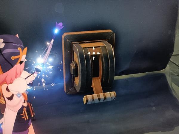在我们的常夜灵庙这里的迷宫,然后将时间调成白昼,攻击三角机关把迷宫调成如图的状态
