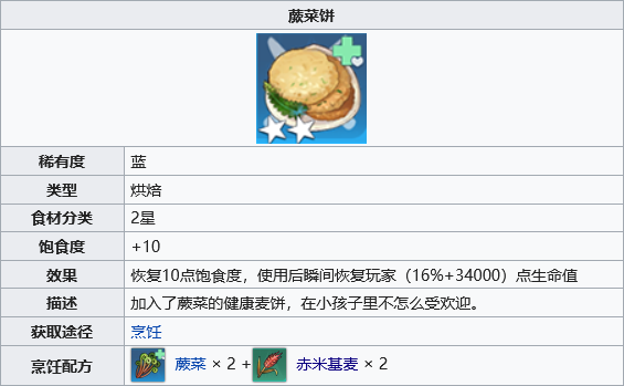 恢复10点饱食度,使用后瞬间恢复玩家(16%+34000)点生命值