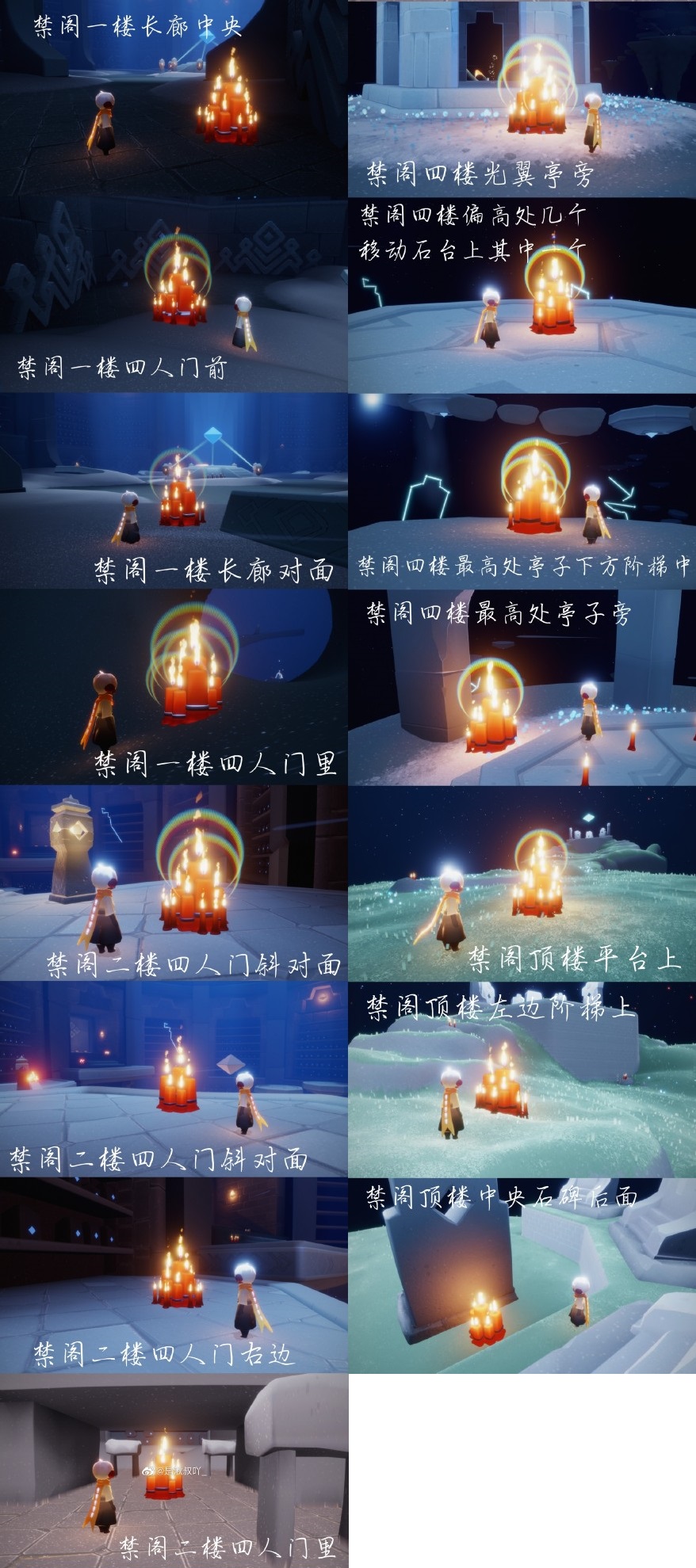 禁阁四楼:光翼亭旁丨偏高处的移动石台丨最高处亭子下方阶梯丨最高处亭子