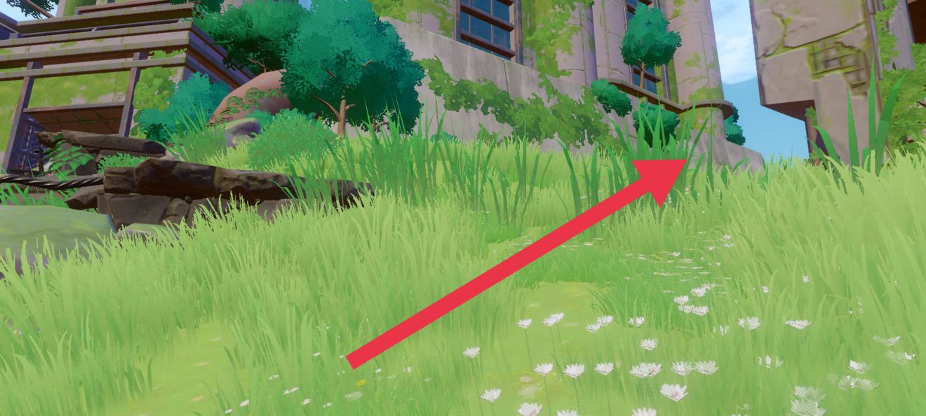 到了折跃门后看向折跃门左方朝着对面带着一根断掉的水管的一处废墟走,之后往那废墟右方的一块草地走。
