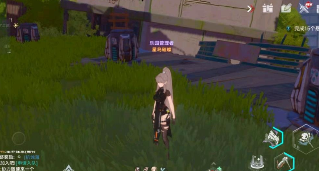 2、这里有一个屏障,我们贴着屏障走到左边角落,可以捡到任务道具一块残渣(可以打开背包检查有没有拾取到任务道具)。