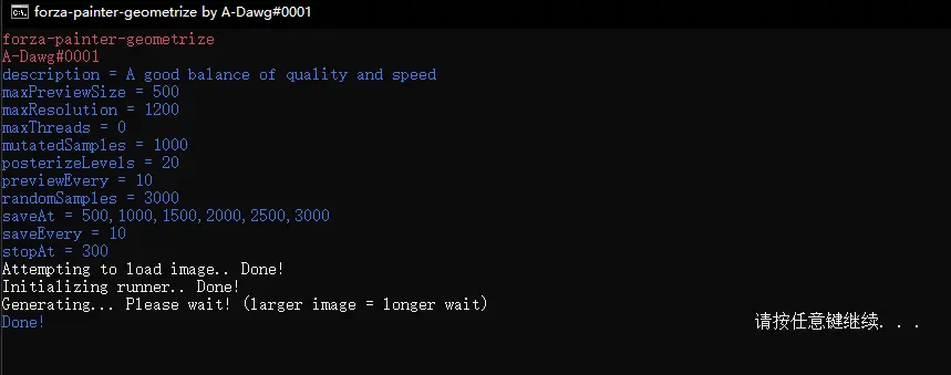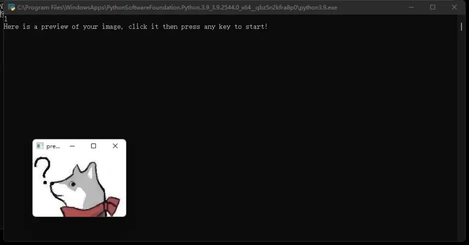 拖入运行后,将会生成预览图,再此窗口按任意即可生成,注意,如果点击命令窗再按键后没反应,需要将光标点到预览图上,再按任意按键即可