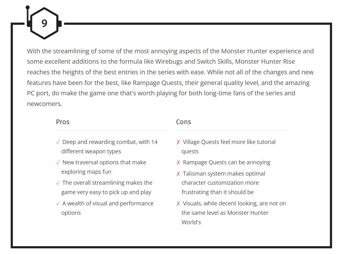 怪物猎人崛起pc版画质如何?随着pc版本上线日的临近,各大游戏媒体对新版本的评分陆续公布了,这里给大家整理了怪物猎人崛起pc版媒体评分一览,一起来看下文中介绍吧。