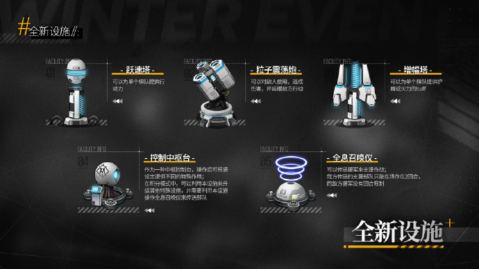现在为指挥官们带来本次冬活新增的全新设施预览,还将在后续为您带来详细报道,敬请关注!