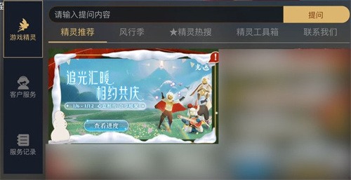 3.然后就进入到了游戏精灵界面中,我们可以看到下图所示这一张活动图,点击图中的【查看进度】;
