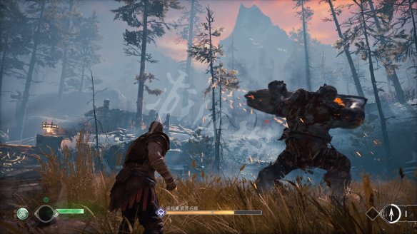打完后会有传统的qte终结演示,山怪的血量较厚,但攻击都非常容易躲避,只要不贪刀,基本不会有什么危险,当然也可以全程投掷斧头风筝巨人,不过投掷对巨人造成的伤害不是特别高。