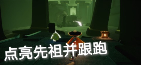 4.任务四:暮土进图之后可以看到回忆先祖在门口不远处,点亮他并且跟随他进行回忆即可。