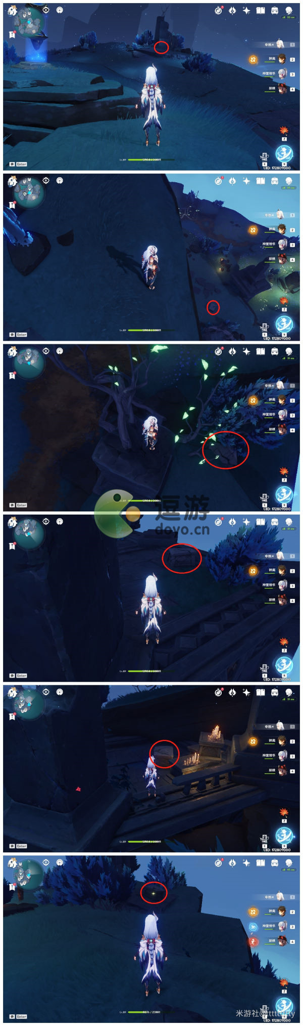 1.标点1:传送至常夜灵庙最右侧传送点,向右下方看去,宝箱就在石壁下啦。