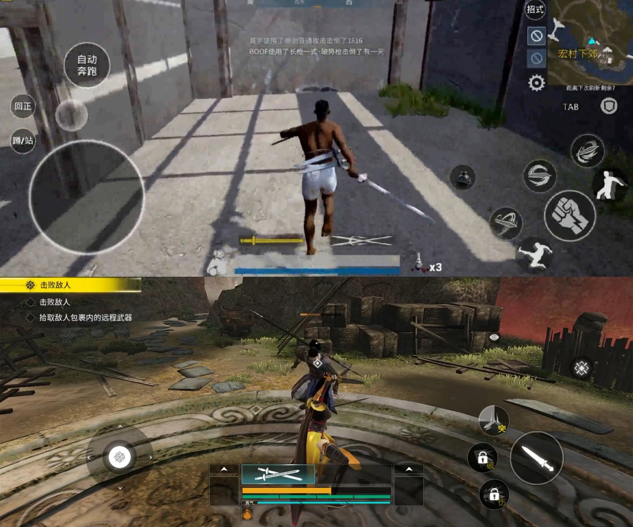 游戏在保证对局的绝对公平性外,还有着诸多不同于当下大逃杀类吃鸡手游的特点,当下大多数吃鸡类手游都是FPS类射击游戏,往往双方交战就在一瞬间,常常会出现“搜东西半小时,死亡一瞬间”的情况。诸多的老六玩家,蹲房间、趴田野阴人,可以说是让被阴死的玩家游戏体验全无。而在真刀真枪对战的《武侠乂》手游中这种场景基本不会出现,不同于其他吃鸡游戏的“运气”性,好的谋略、好的操作、好的入场时机往往才是《武侠乂》能否夺魁的关键。另外,为了让玩家在吃鸡模式的交战中无往不利,游戏还设置了独特的擂台模式,玩家可在开场前自由搭配招式心法等配置,不断磨炼战斗熟练度,玩家不用像其他吃鸡类游戏一样在实战中不断“交学费”,大大减少了玩家的游戏时间成本,在实战中能够拥有更好的精彩吃鸡体验。