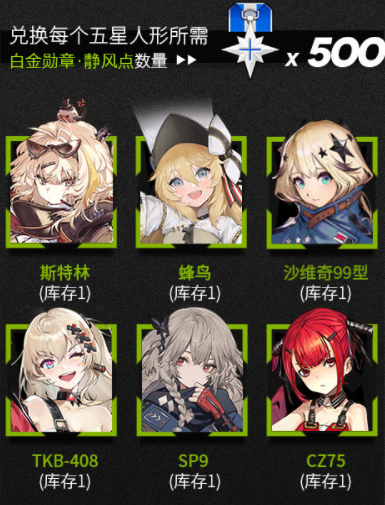 500个白金勋章·静风点可兑换5星“限时救援”救援人形*1