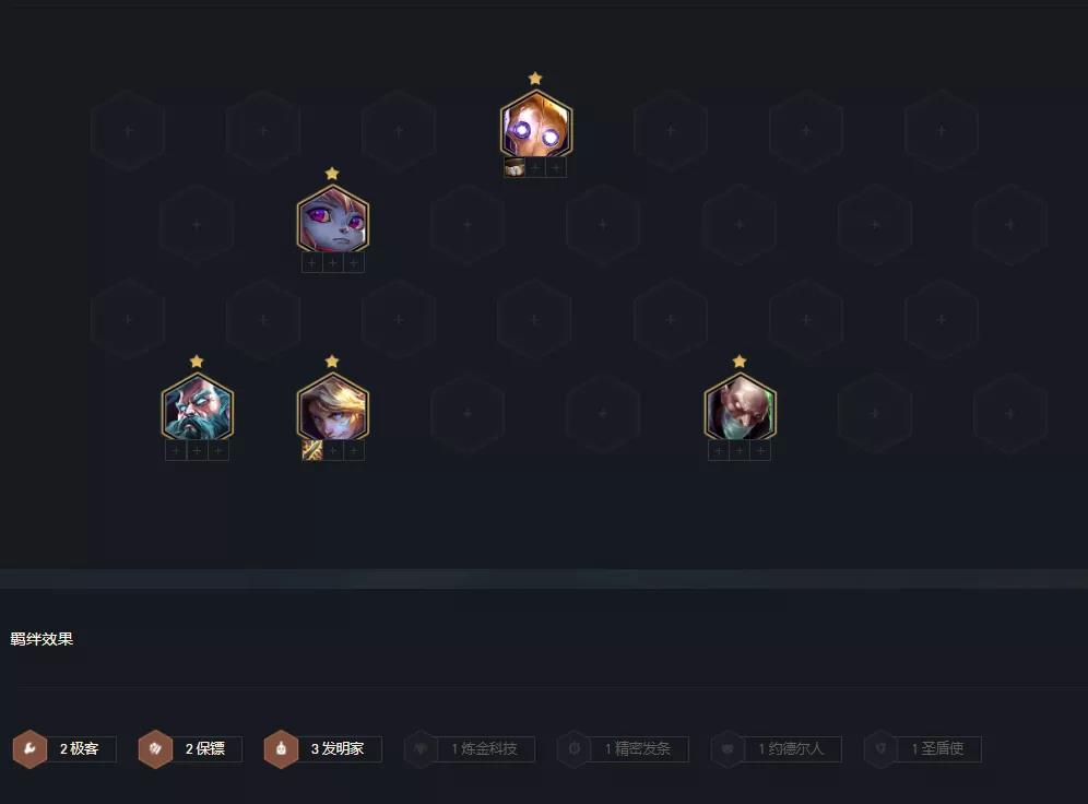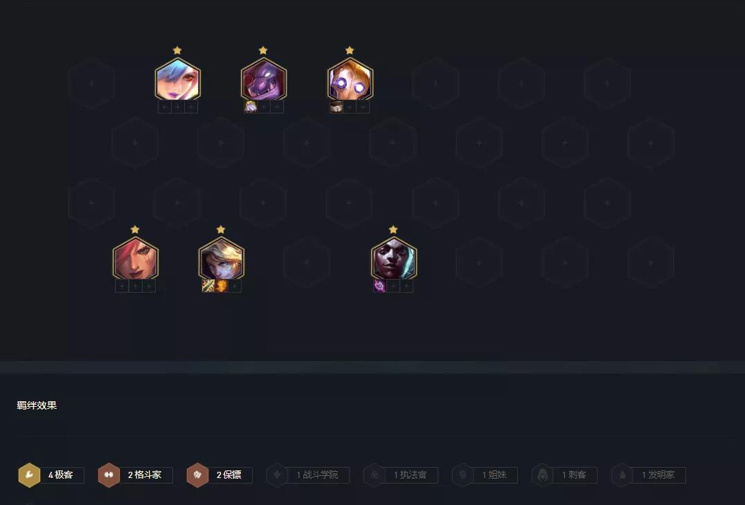这套阵容核心就是6极客+蔚,其他棋子均可替换,比较建议5费强势单卡,特别是塔姆、悠米、杰斯。特别是塔姆,更是能决定这套阵容的上限。