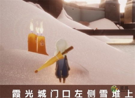 2.在霞光城门口右侧,雪堆上面可以获得季节蜡烛;