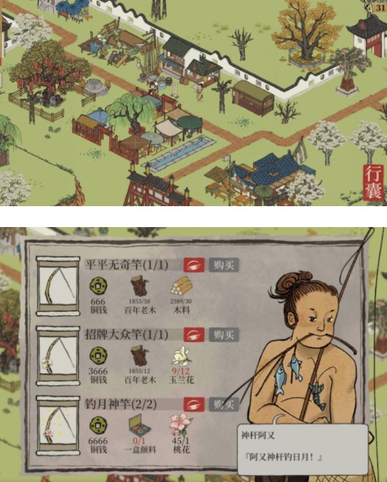 5、获取宝箱5时,需要去【阿又渔具店】买钓鱼竿,三种都要买完,前两次是普通鱼竿钓鱼,可以获取奖励,第三次才能钓到宝箱,走旁边的断桥到不了