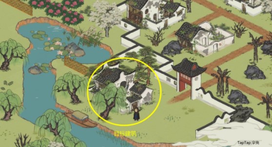 找到五级民宅外观(查看需要玉兰花×4)的才是目标建筑,其他的是浇灌枯树用的