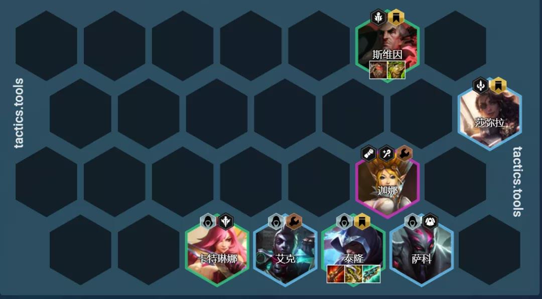 阵容羁绊:3帝国4刺客3辛迪加2极客2保镖