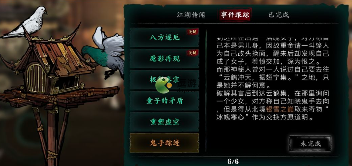 2、任务描述:破解其言后到达云鹤集,在那里询问一个少女,对方称自己知晓鬼手去向,但是得从北境银雪之巅取来奇物“冰魄寒心”作为交换方愿道明。
