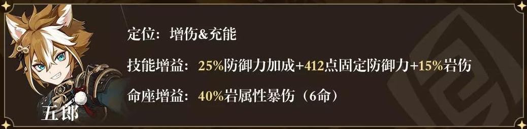 由于一斗本身就是岩元素,加之同期推出的相性极好的4星辅助角色五郎,其实一斗的队友选择真的非常有限。