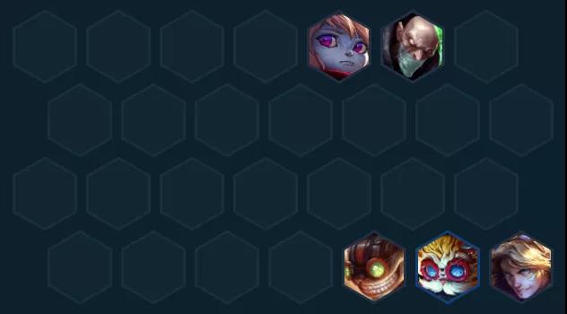 过渡推荐:大头+波比+炸弹人+EZ+炼金组成3约德尔3发明家2极客,能嫖经济还有战斗力,装备先给炸弹人或大头打工,等蚂蚱来了再继承装备。