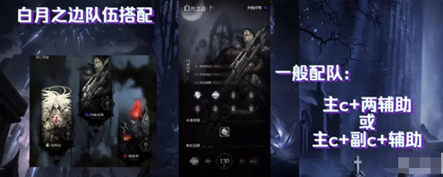 本次白月之边有三个属性BOSS,所以我们至少需要三个属性的输出各一个,才能比较容易击败这几个BOSS。而辅助都是通用的所以白月之边的队伍搭配一般为:主c加两辅助或主c加副c加辅助。