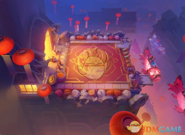 3、战场两边还有两只萌萌的小老虎,以及各种小吃,背景中漂浮着极具节日气氛的红灯笼和由小河灵驾驶的锦鲤船。