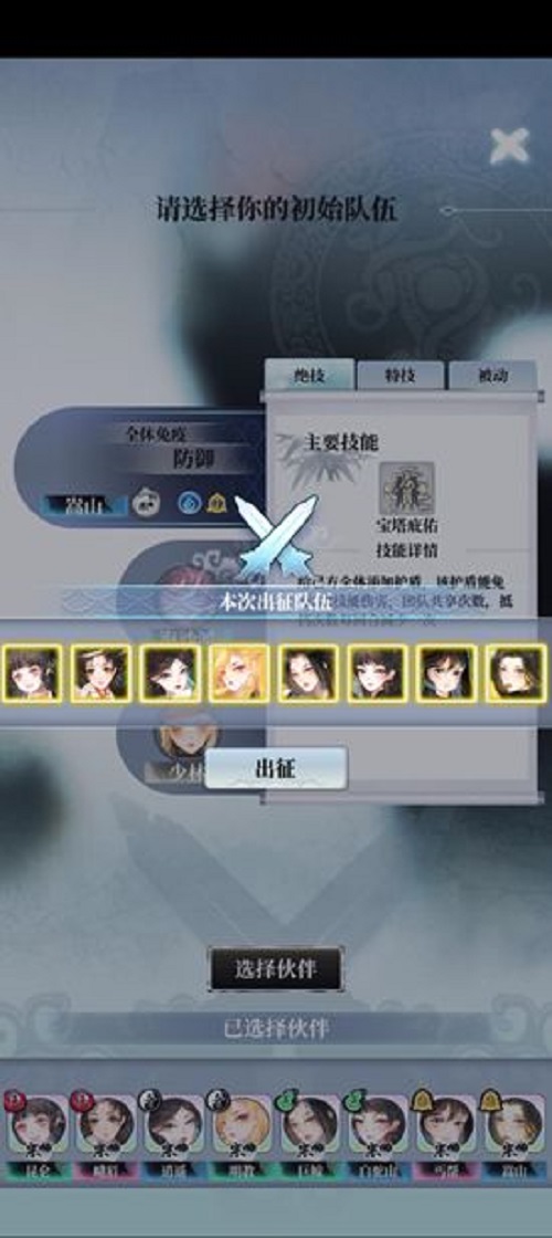 2、队伍创建:初始队伍有八次武娘选择机会(每个职业两次),最终挑选出与掌门最有缘最契合的八位武娘。队伍创建后,掌门便可以根据当前的武娘,搭配出自己心仪的阵容,进行官方设置阵容挑战+连胜留名玩家的阵容挑战。获得十二次胜利、或者两次挑战失败都将结束试炼。(注意:试炼对手也是随机的哦~建议各位掌门根据属性克制、前后排输出选择对位和核心放置)。