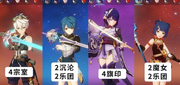 行秋2沉沦2乐团(或者2宗室也可以),武器仍旧是优选祭礼剑,其他武器比较随意,充能类单手剑优先就可以;