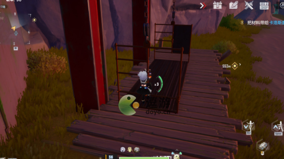 3、这里有个升降梯,等它下来的时候跳上去挂在升降梯边缘。然后就能够利用升降梯轻松达成【登高无止境】成就