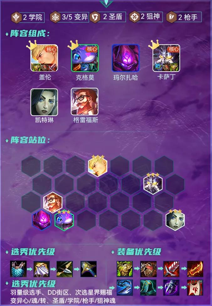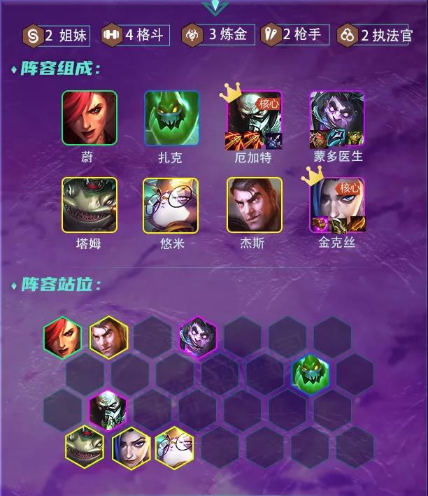 阵容对海克斯强化要求非常低,大部分都能用,最优格斗家/炼金之心/魂,神枪手 泰坦之劲,高端购物等。
