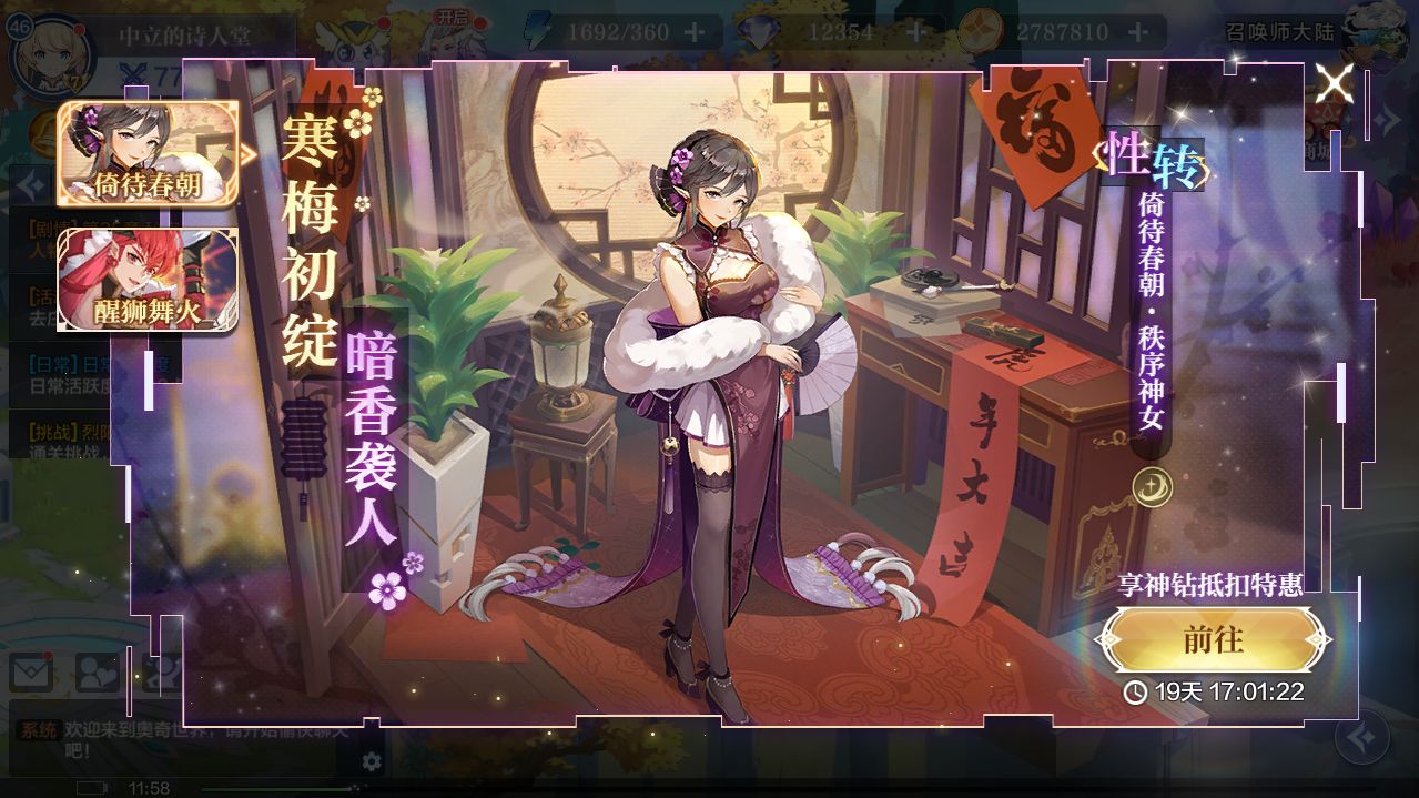 神临王者·秩序圣龙性转皮肤【倚待春朝·秩序神女】登场,新春商城神钻直接抵扣200神钻!