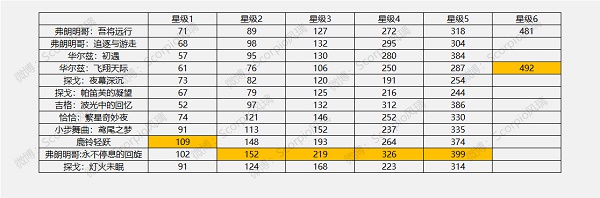 5.歌曲星级越高按键数量越多拿到的代币也就越多。保底高星歌全连每天前3次拿完可以获取的代币数量在1000左右。下图为每首歌各星级的键位数,建议优先选自己能全连的歌曲。