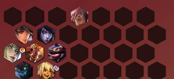 一般在七人口的时候搜索质量一点的英雄,然后直接上8,在该阵容中中期依靠努努和寒冰在同等质量下都是非常给力的,可以灵活的站位搭配5费卡进行战斗。