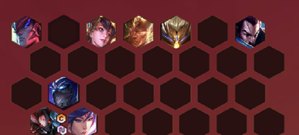前期可以不去D牌,只用低费的压缩、剑姬、武器等快速存满50利息,自然升到5人口后再开始选牌,前期亚索是非常多的,可以快速凑齐三星,在打完石头人后基本就可以做出三星了,在自然升到5级后亚索数量就会变少了,在该阵容中亚索是主C的,最好的装备就是无尽轻语水银了, 反曲之弓和金铲铲可以合成决斗纹章,将该纹章给到永恩即可。