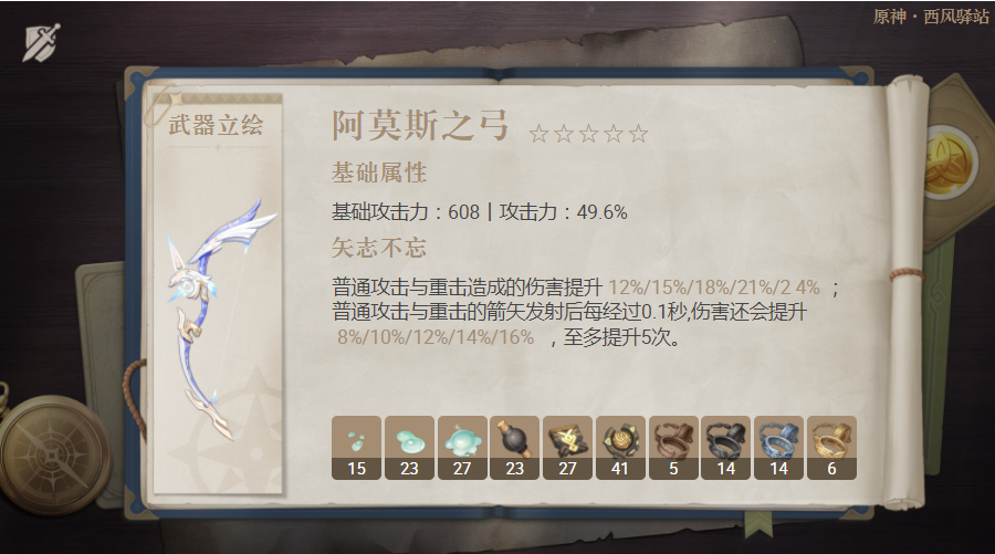 抽取建议:作为甘雨的毕业武器,阿莫斯之弓的“专武”性质较强,不推荐为了除甘雨以外的角色抽取该武器。