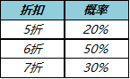 神秘商店抽到的折扣为随机概率,其概率如下:
