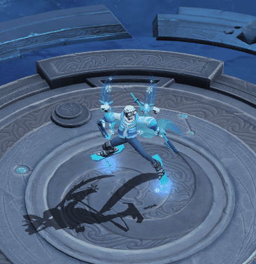 我们结合冬季的季节元素与冰雪运动特有的精神内核,以年轻、潮流、极限的表现元素和手段;以不断挑战、突破自己,追求更高更快更强的体育精神为故事内容,为哪吒设计了一款脚踩双板的滑雪少年皮肤。我们对哪吒的武器进行了特殊设计,将风火轮设计为滑雪板及雪花冰晶浮轮,大招开启时将由短板变为长板;混天绫则设计为雪花飘带。同时,我们在展示动画中,沉浸式地展现了哪吒完成奇迹之跃高难度动作的瞬间。