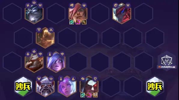 一定要连胜才能玩,过渡推荐用豹女三国天选+皇子+蜘蛛+提莫组成3三国2神盾2神射,2-5拉5,3-2拉6补3腥红。前期过渡不唯一,什么质量就上什么,3-5或3-7拉7,小D场面质量,可以上狐狸带法强装打工,烬换提莫提高战力。4-2或4-5上8,8人口要是质量不够打的话,卖掉天选花点钱拿4费卡天选先用着:锐雯天选、狐狸天选、烬天选都可以。顺的话大概在5-4之前可以上9,9人口卖掉场上所有卡大D5费天选,腕豪和凯影的天选最佳,其次是永恩和瞎子,搜出来的5费卡都拿,先上场稳住战力,之后再慢慢D其余体系卡的质量直至阵容成型即可。