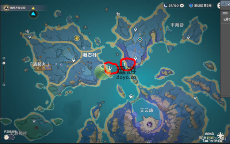 2.既然需要钓鱼,那我就将我知道的钓鱼点告诉你们吧,免得你们找,中途截屏的时候线断了,跑了一条鱼,顺便完成了这个放生路线的成就,没完成的原鱼玩家可以做了,这些鱼群应该是 两天 刷新一次。