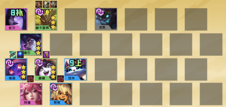 一条路线是9森林,森林转瑟提,这里注意下森林转塔姆已经削弱了,从75减伤改为50;另一条路线则是8级补夜幽,全队加法强,9级补悠米连2明昼2秘术,对位方面铁王八只要成型,缩着让小法点就完事了,但扎堆阵容毕竟怕盲僧,分散即可解决问题,蛇女和人马去对位对面的主力即可。