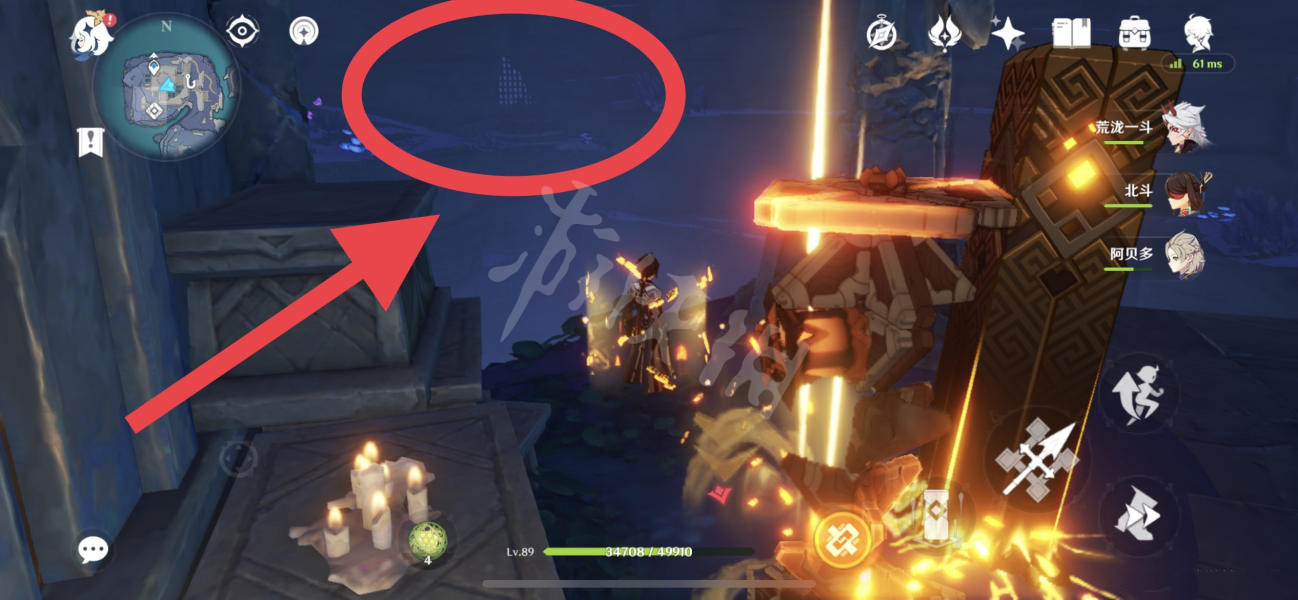 回到上述豁口位置,往右,看到烛台往上爬,有一个缺口。