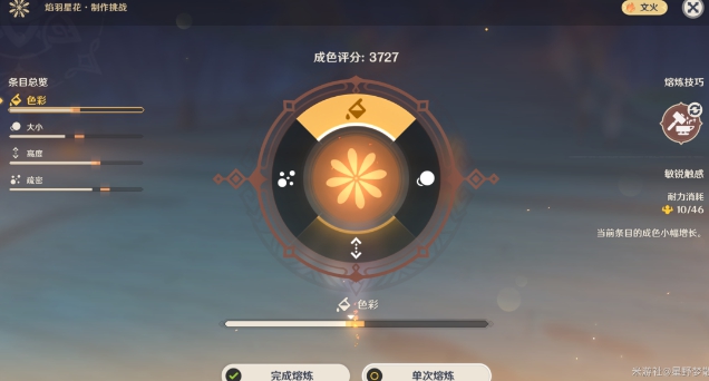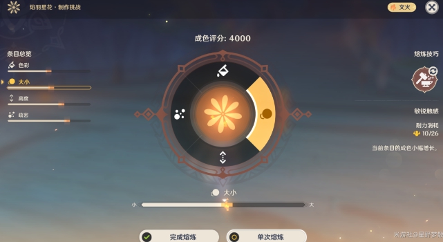 3.在色彩、大小、疏密条目各使用一次【文火】敏锐触感即可完成