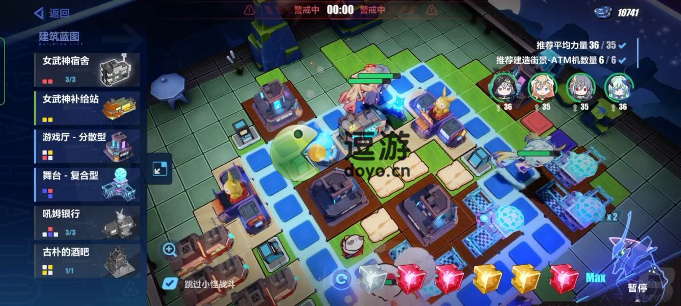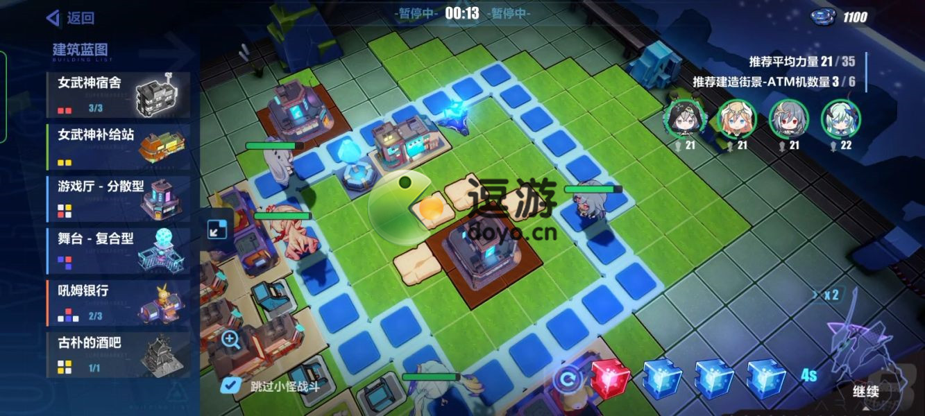 2.接着以游戏厅为主要目标堆叠力量,有多余蓝色方块积压的时候选择放置银行(记得放下获得的ATM哟)。