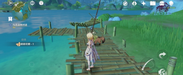 与吉法师对话,然后钓三条鱼,钩完之后再次与吉法师对话