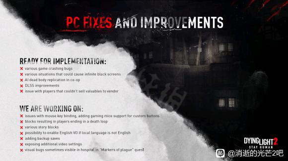 消逝的光芒2有哪些BUG?许多玩家在游戏时遇到了各种各样的BUG,为了修复这些BUG官方也是做出了修复补丁,下面小编就带来消逝的光芒2官方修复补丁介绍,一起来看看吧。