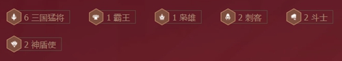 6三国猛将、1霸王、1枭雄、2刺客、2斗士、2神盾使